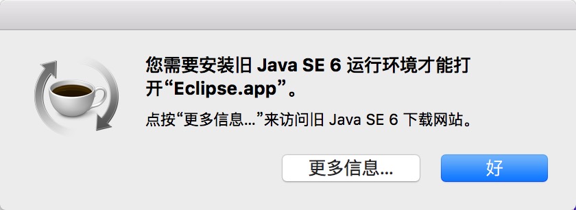 1. 如何解决 Mac OS X 下安装的是 Java 1.8,运行 Eclipse 时提示「您需要安装旧 Java SE 6 运行环境才能打开「Eclipse.app」。」的问题?